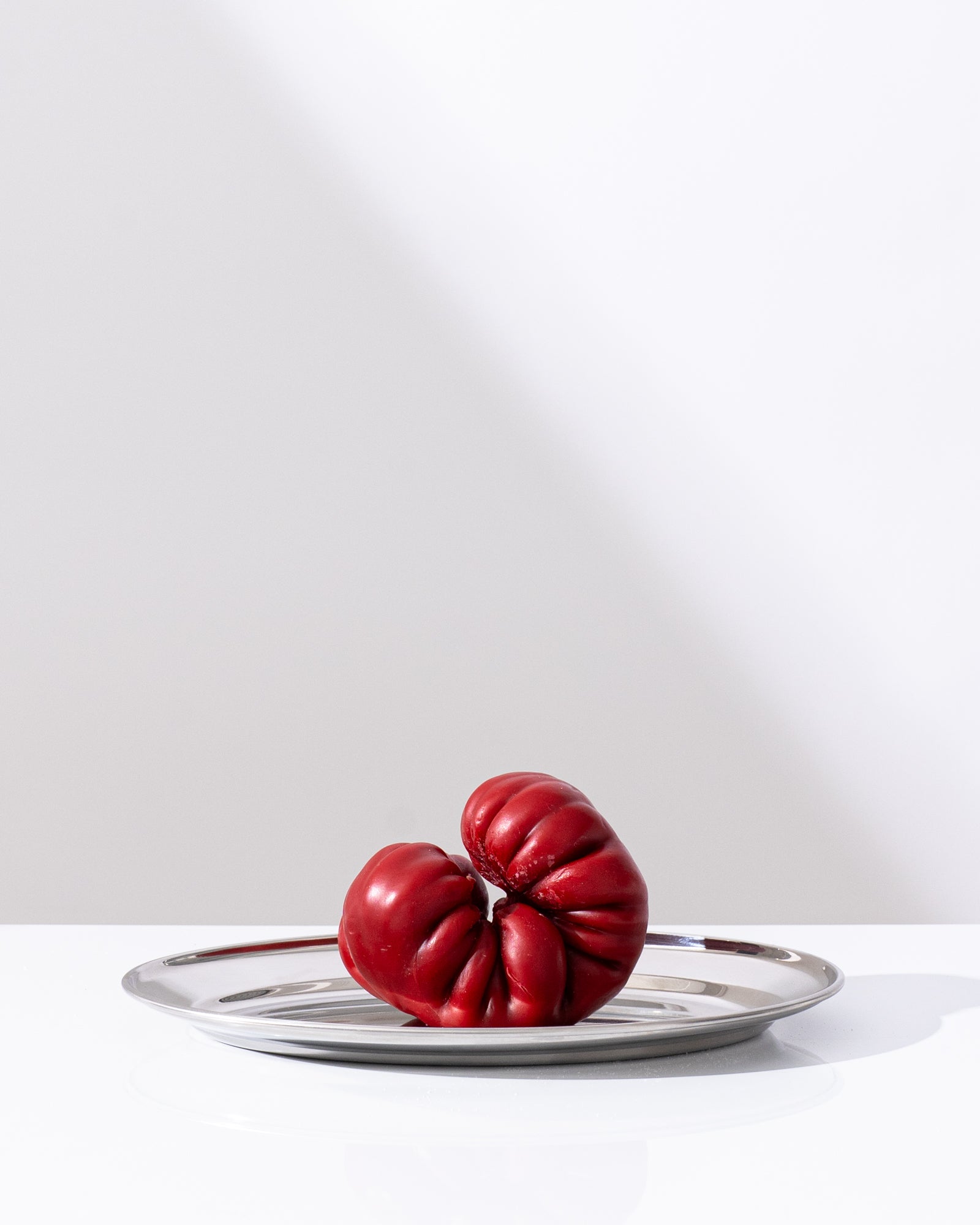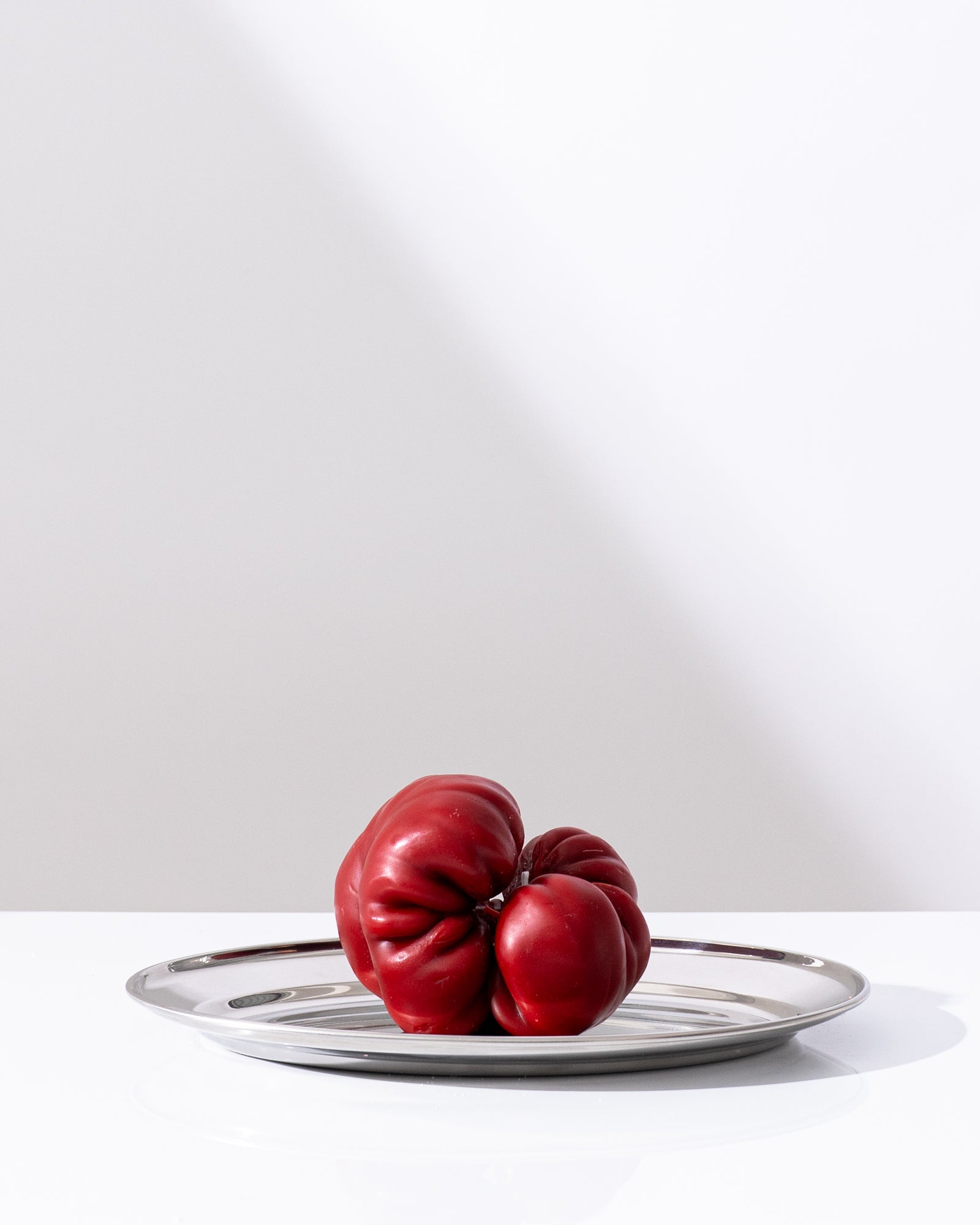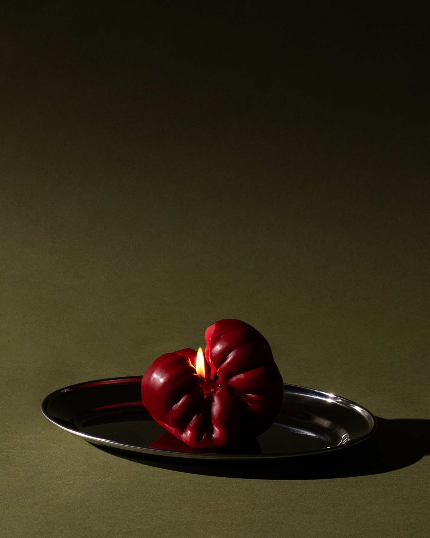 CAST FROM A REAL HEIRLOOM TOMATO AND SCENTED WITH OUR SIGNATURE WARM, GREEN FIG BOIS FRAGRANCE, THIS CANDLE SMELLS AS GOOD AS IT LOOKS.