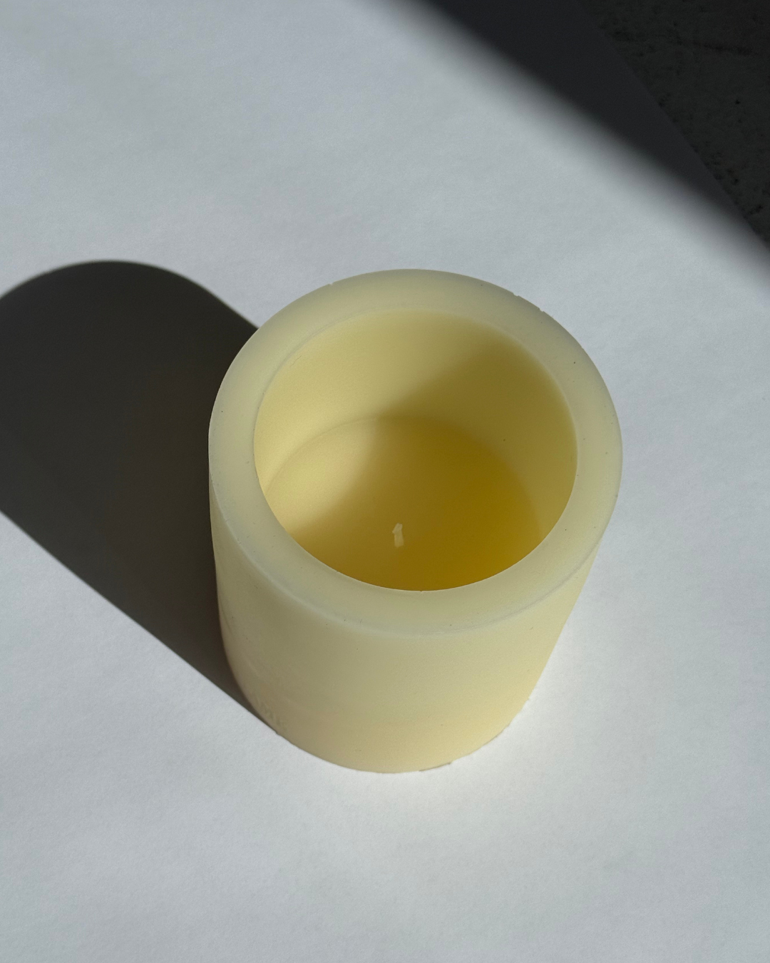 A refined reinterpretation of the traditional pillar, this candle utilises beeswax's natural translucency to create a luminous, lamp-like aura. It fills the space with a soft, radiant circle of light.