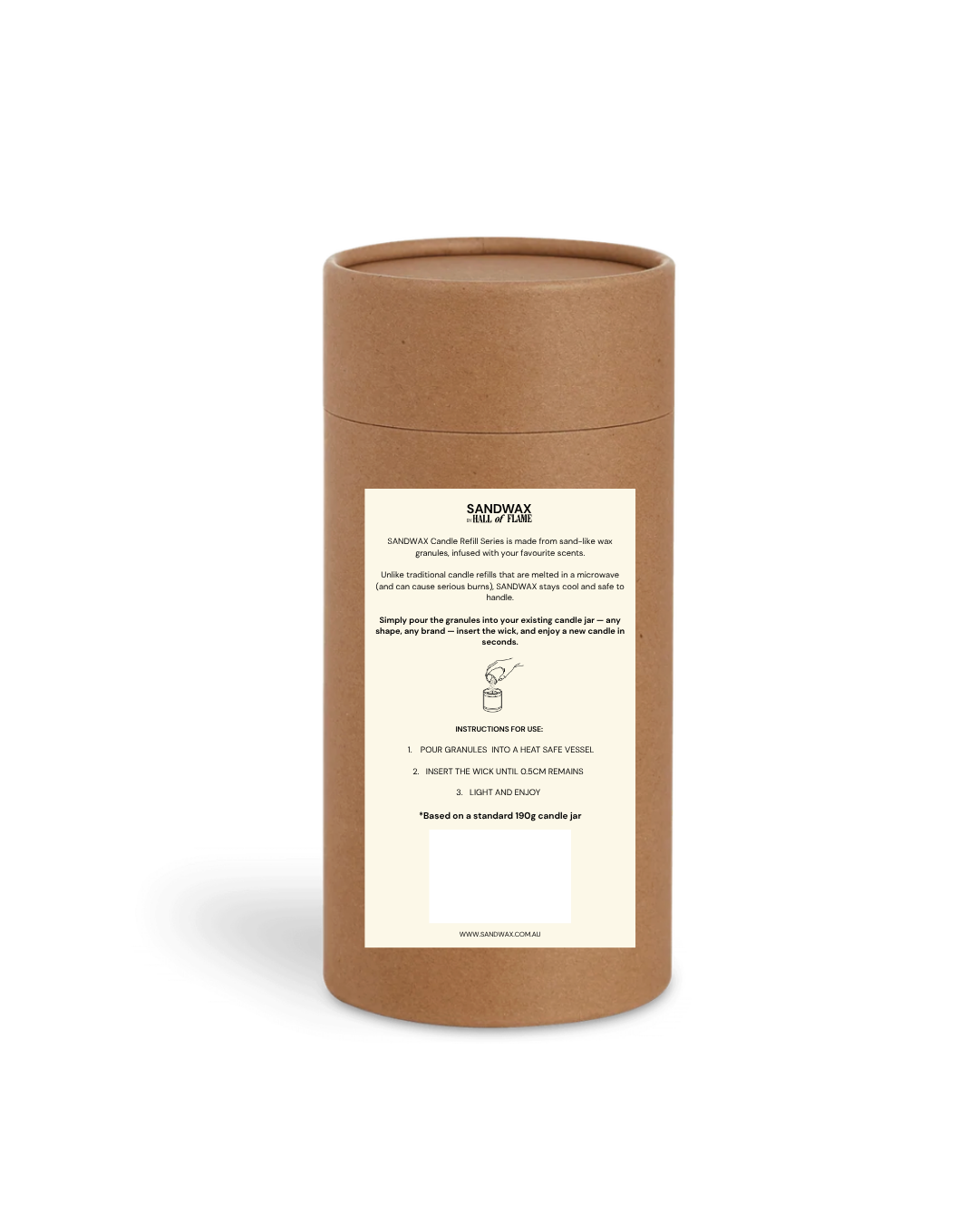 Unlike traditional candle refills that are melted in a microwave (and can cause serious burns), SANDWAX stays cool and safe to handle.